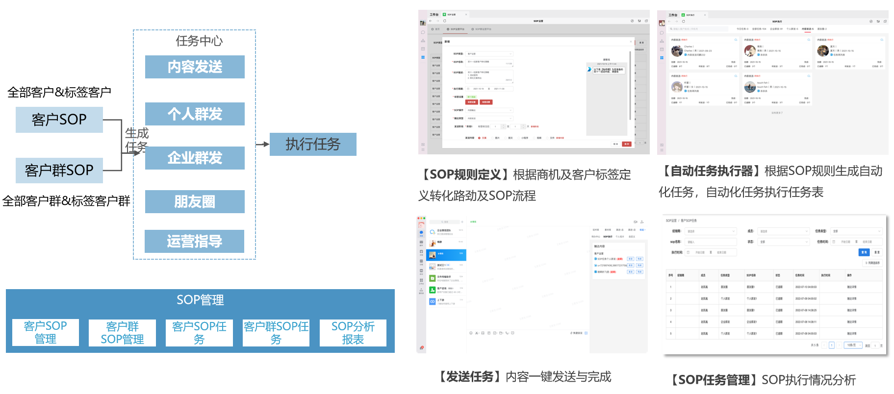 整合企业微信与微信生态,构建 “加微 - 标签 - 互动 - 转化” 完整SOP闭环体系。支持一键建群、离职客户继承、会话存档分析等功能,显著增强用户粘性。