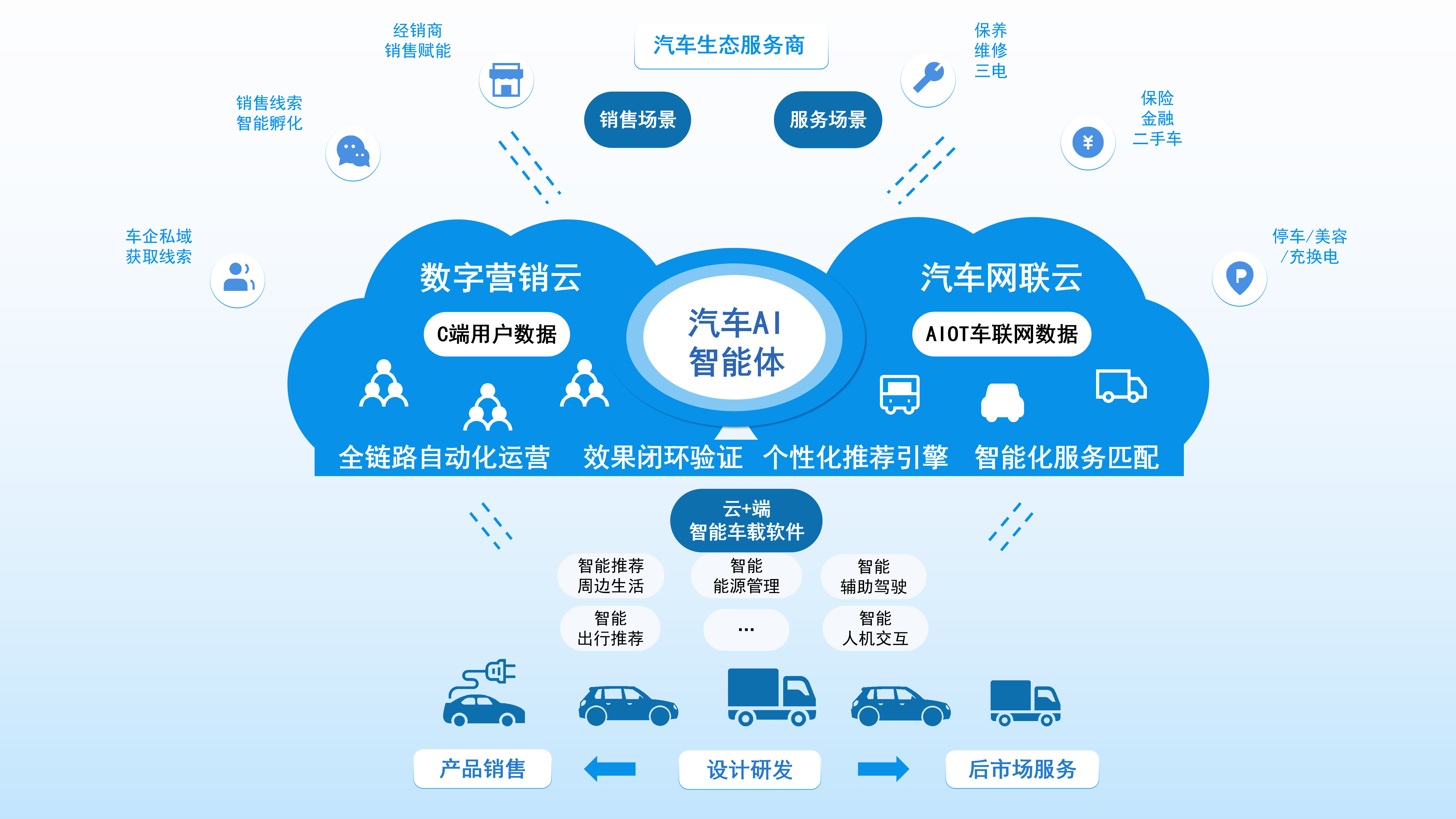 融合大数据、车联网、AI大模型等技术,基于汽车工程领域沉淀的知识库,深入学习行业know-how,构建AI垂直模型,在车辆诊断、车辆维修、金融保险、二手车估值等领域实现智能化服务。